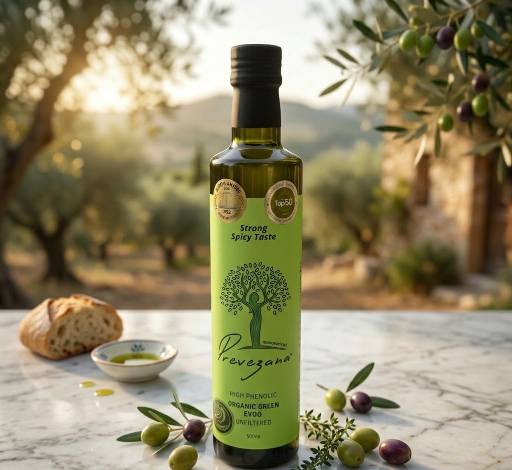 Erleben Sie die Kraft der Natur mit unserem Bio Green Olive Oil, einem ungefilterten Olivenöl mit hohem Polyphenolgehalt. Dieses exklusive Öl wird aus sortenreinen Preveza-Oliven gewonnen, die in der Region Preveza in Griechenland angebaut und im September 2023 per Hand geerntet wurden.